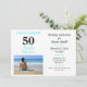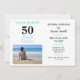 Convierta a cumplir 50 años en una ocasión simplemente fabulosa con esta divertida y coqueta invitación fotográfica de cumpleaños. Personalízalo y envíalo para tu gran celebración. Las palabras "50 and Simply Fabulous" son de tipografía azul brillante y negra. Puedes cambiar la foto con tu propia foto si quieres. Los colores del texto se pueden cambiar a través del menú de edición. La parte trasera de la invitación tiene un hermoso patrón geométrico gris con círculos. Hay otros motivos y colores disponibles.