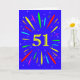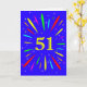 ¡Una explosiva tarjeta de 51 años! Qué manera maravillosa de enviar saludos de cumpleaños. El número 51 en amarillo brillante con una explosión de colores brillantes y estrellas.