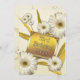 Bonitas margaritas blancas con un fondo dorado. Un toque de clase para una elegante invitación a la fiesta de cumpleaños número 53. Añade los detalles del fiesta en la parte posterior.