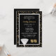 Esta gran invitación a la fiesta de 55 años incluye un confetti de oro sobre negro en el fondo con un vaso y el número "55" haciendo una gran invitación a una fiesta de 55 años. Copyright henishouseofpaper