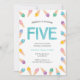 ¡Que tengas una fiesta de 5 años de helado para tu pequeña! Esta encantadora invitación de cumpleaños cuenta con coloridas cremas de color arcoíris en el hielo, que son bonitas y perfectas para un cumpleaños de verano. ¡Invitar con estilo! Todos los detalles incluidos (excepto la edad) son personalizables. (Otras edades y colores también disponibles en mi tienda!) © Mini Moi Prints.