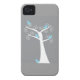 Cinco adorables pájaros azules cuelgan en un árbol blanco contra un fondo gris en este lindo funda de casemate
