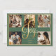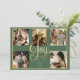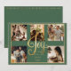 “Felicidad” en hermosa letra dorada falsa. Fondo verde de temporada. Agrega tus fotos familiares favoritas para personalizar. Cambia los nombres y el año, tu nombre y qué hermosa tarjeta de Navidad. Elegante. Tan simple, pero con estilo.