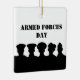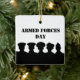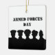 Cada una de estas siluetas representa a cada rama de la Armada Militar (L a R) de los Estados Unidos, los Marines, la Guardia Costera, el Ejército y la Fuerza Aérea. Algunos de los gorras son tan similares, escogí los que eran un poco más distinguidos. El texto frontal puede cambiarse si desea usar este ornamento para un propósito diferente al del Día de las Fuerzas Armadas. Y el texto de fondo depende totalmente de ti. Diseñado por Sheila Cicchi, Brownielocks.com. Todos Los Derechos Reservados. NOTA: Debido al diseño, sólo se puede comprar en ornamentos SQUARE.
