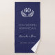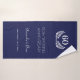 Una corona de laurel con el número de años de matrimonio. Personalice y agregue sus nombres y una fecha. Un fondo azul marino, texto blanco.