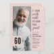Crea momentos inolvidables con nuestras modernas invitaciones para fiestas de cumpleaños número 60! Caracterizadas por un sofisticado fondo rosado y un dicho divertido - '¡Llevó sesenta años lucir así!', estas invitaciones también ofrecen una cómoda plantilla de texto que puedes personalizar fácilmente. Añade la foto del celebrante, y tienes una invitación que es tan extraordinaria como el hito que está celebrando!