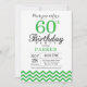 Invitación de cumpleaños 60 con Chevron verde. Blanco y negro. Cumpleaños de adultos. Invitación de cumpleaños de hombre o mujer. Para una mayor personalización, haga clic en el botón "Personalizar" y utilice nuestra herramienta de diseño para modificar esta plantilla.