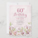 Bonita invitación tradicional de cumpleaños número 60 con un fondo floral. © Mini Impresiones Moi
