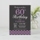 Invitación de cumpleaños 60 con Chevron negro y púrpura. Pizarra. Cumpleaños de adultos. Invitación de cumpleaños de hombre o mujer. Para una mayor personalización, haga clic en el botón "Personalizar" y utilice nuestra herramienta de diseño para modificar esta plantilla.