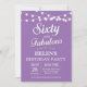 Invitación a los 60 Años con String Luces fondo morado. Fiesta de cumpleaños de mujeres. Sesenta y fabuloso. Cualquier edad. Para una mayor personalización, haga clic en el botón "Personalizar" y utilice nuestra herramienta de diseño para modificar esta plantilla.
