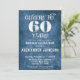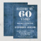 Una rústica invitación a la fiesta de cumpleaños número 60 en una burrega de lino azul de tipo blanco que dice ovaciones a los 60 años. Ideal para celebraciones casuales de cumpleaños. Adecuado para fiestas de cumpleaños de hombres o mujeres.