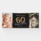 Banner de la fiesta de cumpleaños número 60 con un fondo negro de moda, 2 grandes fotos, purpurina y confeti dorado, globos de hélice de 60 leopardos impresos y una plantilla de celebración de personalizados que es fácil de personalizar.