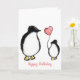 Cute tarjeta personalizada de mamá de 60 años que muestra un pingüino y un niño con un globo de corazón rosado. Una tarjeta encantadora y moderna para que un hijo o hija dé su mamá cuando cumpla sesenta años. Tanto el mensaje interior como el externo se pueden personalizar según se desee.