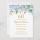 60.º cumpleaños Elegante Blue Gold Invitación flor