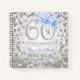 Una elegante y sofisticada plantilla de 60TH Birthday Guest Book con Glam Lights & Purpurina Confetti en Plata y Azul con texto fácil de personalizar.