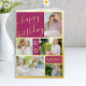 Tarjeta de cumpleaños de lujo de Relieve metalizado dorado que puedes personalizar con un nombre, cualquier edad y 5 fotos en la parte delantera, así como un saludo de cumpleaños personalizado en el interior. La plantilla de fotos se configura para crear automáticamente un collage de fotos de retrato vertical, horizontal y cuadrado de imágenes. Si tiene algún problema con la ubicación de la imagen, puede recortar la foto a la forma derecha y volver a subir o puede hacer clic en "editar usando la herramienta de diseño", luego haga clic en la foto que le da el problema y usar el botón "recortar" para reubicarla.