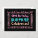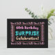 Este diseño con sus viejas y coloridas letras festivas es una manera de la diversión de invitar a la gente a una celebración del cumpleaños de la SORPRESA. El texto encendido apoya de la invitación es totalmente adaptable. Usted puede experimentar con diversos tipos de papel haciendo clic en "la etiqueta de las opciones de la invitación" en la esquina derecha superior. Recomiendo el papel metálico hued del hielo que dará a su invitación un reflejo y un brillo festivos. Los sellos de la fiesta de cumpleaños de la SORPRESA están también disponibles.