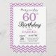 60.o Invitación del cumpleaños con Chevron púrpura. Blanco y negro. Cumpleaños adulto. El hombre o las mujeres Bday invita. Para el arreglo para requisitos particulares adicional, haga clic por favor el "personalizar él" botón y utilice nuestra herramienta de diseño para modificar esta plantilla.