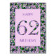 Tarjeta de cumpleaños 62 para una mujer a la que le gustan las flores. Una elegante tarjeta de cumpleaños con un fondo de flores de margarita morada. ¡Esta es la tarjeta perfecta para un chica que ama cualquier cosa floral o morada!