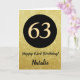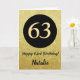 63.ª Tarjeta Purpurina Feliz Cumpleaños Negra y Oro con nombre personalizado. Para una mayor personalización, haga clic en el botón "Personalizar" y utilice nuestra herramienta de diseño para modificar esta plantilla.