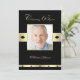 Esta invitación a la fiesta de cumpleaños número 65 muestra una foto del honor de cumpleaños con un impresionante fondo negro y dorado. El nombre del honorario también se coloca debajo de la foto para hacer una invitación muy personalizado a la fiesta de cumpleaños número 65. Copyright henishouseofpaper