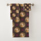 Este diseño de zorro presenta zorros lindos que llevan un arco, círculos de dos tonos de color y estrellas rosas sobre un fondo marrón.