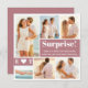 Todos amarán ver tus fotos de compromiso. Este anuncio de compromiso con collage de 6 fotos te da una gran oportunidad para mostrarlas. Los dos cuadrados rosados polvorientos contienen tu texto. Todo el texto blanco se puede editar para crear tu toque único. Agregé un ¡Sorpresa! Luego dos líneas de texto en el cuadrado grande en el más pequeño inserté tus monogramas separados por un corazón.