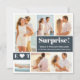 A todos les encantará ver sus fotos de compromiso. Este anuncio de compromiso de collage de 6 fotos le da una gran oportunidad de lucirlas. Los dos cuadrados de gris carbón contienen su texto. Todo el texto blanco se puede editar para crear su toque único. Agregué un juguetón ¡Sorpresa! Luego, dos líneas de texto en el cuadrado grande en el más pequeño inserté sus monogramas separados por un corazón.