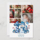 Celebre la primera temporada de vacaciones de su pequeño hijo con este alegre diseño de invierno con un número de manitas azules, adorables muñecos de nieve, y dulces y regalos dispersos. Personalizar con la foto de su bebé y los detalles de su nacimiento para crear un recuerdo que le traiga encanto y magia a sus recuerdos de vacaciones.