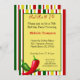 Fondo rojo con una pimienta roja caliente para celebrar el septuagésimo cumpleaños. Invitación divertida de cumpleaños para celebrar un cumpleaños número 70. Consulta a otro Personalizar de invitaciones de cumpleaños con tu información personal.