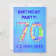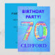 Invitación a la fiesta de cumpleaños número 70. Añade un nombre y tus detalles para hacer una fantástica invitación de fiesta de cumpleaños. ¡Los números están hechos de palabras relacionadas con los cumpleaños para que todos estén de humor!