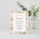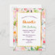 Una elegante carta de invitación de verano intemporal y con temática de jardín para 70 años. Bohemio y estilo boho. Con románticos pasteles suaves y flores de color acuático en tonos rosa y melocotón y hojas verdes. Fondo blanco para el texto. Una moda imita el marco de oro. Plantillas para un nombre y detalles de fiesta, guiones de estilo con letras moradas, doradas y verdes a mano.