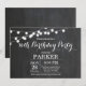 Invitación de cumpleaños 70 con fondo de tablero de anuncios con luces de cadena. 13.º 15.º 16.º 18.º 21.30.40.50.60.70.80.90.100, Cualquier edad. Para una mayor personalización, haga clic en el botón "Personalizar" y utilice nuestra herramienta de diseño para modificar esta plantilla.