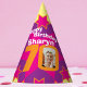 El patrón de estrella brillante agrega tu propia foto y nombre de gorra fiesta. Ideal para una fiesta especial de cumpleaños número 70 de mujeres. Diseño rosa, naranja y amarillo colorido. El color de fondo también se puede cambiar para su elección actual de amarillo. Arte y diseño originales de Sarah Trett. www.sarahtrett.com para www.mylittleeden.com
