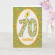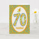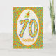 Una 70.a tarjeta de cumpleaños bonita, con el saludo en Galés y un modelo de las maravillas de pote anaranjadas brillantes en la frontera así como en los números. De adorno pintado a mano de Judy Adamson.