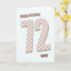 Una tarjeta de cumpleaños 72 muy moderna. Esta carta es realmente fabulosa. Grandes letras con rayas modernas sobre un fondo azul. Personalizar de su propio mensaje único.