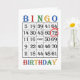 72.o Tarjeta de cumpleaños. Diga el feliz cumpleaños a un jugador del bingo con una tarjeta del bingo. La edad se circunda en rojo. ¡Un jugador loco del bingo saldrá un retroceso enorme de esta tarjeta! Copyright Norma Cornes.