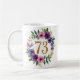 Celebra 73 hermosos años con esta elegante taza de cumpleaños floral! Con una impresionante cortina de agua de flores rosas y violetas, exuberantes hojas verdes y un "73" dorado en el centro, esta taza es un regalo perfecto para cualquier abuela, madre, tía o amiga que cumpla 73 años. Delicado pero vibrante, es ideal para el café matutino, el té de la tarde o simplemente disfrutar de un momento de reflexión. Un recuerdo atemporal para una mujer atemporal.