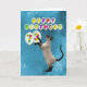 Un gato siamés juguetón persiguiendo globos. Una buena manera para que un amante de los gatos envíe una tarjeta de cumpleaños.