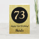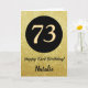 73.ª Tarjeta Purpurina Feliz Cumpleaños Negra y Oro con nombre personalizado. Para una mayor personalización, haga clic en el botón "Personalizar" y utilice nuestra herramienta de diseño para modificar esta plantilla.