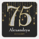 pegatinas de etiquetas de favores por 75 años, con un número de diamante y oro con hilos de luz brillantes, personalizados con nombre y fecha a continuación.