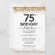 Elegante purpurina de oro de Faux con brillantes notas de confeti en el borde superior e inferior. Todo el texto es ajustable y fácil de cambiar para sus propias necesidades fiestas. Gran diseño elegante de plantillas de cumpleaños 75.