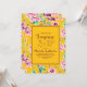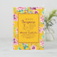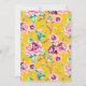 Invitación sorpresa para una fiesta de cumpleaños para una mujer de 75 años. Diseñado con flores rosas brillantes y hojas verdes sobre un fondo amarillo audaz.
