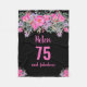 Elegante diseño para una fiesta de cumpleaños número 75 con un rosa "80 y fabuloso" y un nombre escrito adornado con flores de acuarela femeninas sobre un fondo negro. edad, texto, nombre y color de fondo del personalizar.