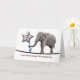 Un elefante se balanceaba en una cuerda floja con un globo de cumpleaños.