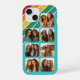 Añadir 7 fotos a este collage. Un patrón de rayas funky en negro, oro, naranja, rojo, verde, azul - Si su arte todavía necesita ser ajustado, haga clic en el Personalizar Este botón. Esto te llevará a un área de diseño donde puedes mover cosas e incluso cambiar fuentes.