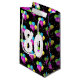 Boquetas de globo de 80 años coloridas con confeti fiesta sobre fondo negro. Se puede cambiar el color de fondo. El texto se puede editar en cualquier cumpleaños de edad.