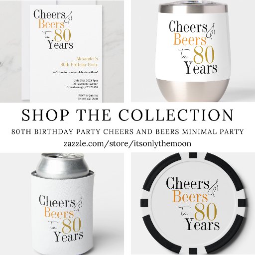 80th Birthday Party Cheers and Beers Minimal PartyDiseñado por Only The Moon