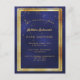 Una moderna y moderna tarjeta de invitación para la fiesta de cumpleaños número 80 para hombres, hombres y hombres. Un fondo azul oscuro, azul marino. El color azul es desigual. Con un marco de oro falso y un confetti dorado rociado, letras de colores dorados. Plantillas para la información de su fiesta. Atrás: diseño simple de postales.