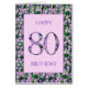 Tarjeta de cumpleaños 80 para una mujer a la que le gustan las flores. Una elegante tarjeta de cumpleaños con un fondo de flores de margarita morada. ¡Esta es la tarjeta perfecta para un chica que ama cualquier cosa floral o morada!